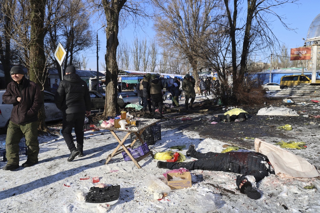 路透社報道,頓內茨克市長庫萊姆津表示,烏克蘭軍隊轟炸了市內商店和市內的繁忙地區。由在現場拍攝的照片和影片顯示,市內有人受驚哭泣,有死傷者倒臥在市場附近,雪地上沾滿鮮血。當地救援人員正在現場工作,法醫專家正在努力收集攻擊中使用的武器碎片。
