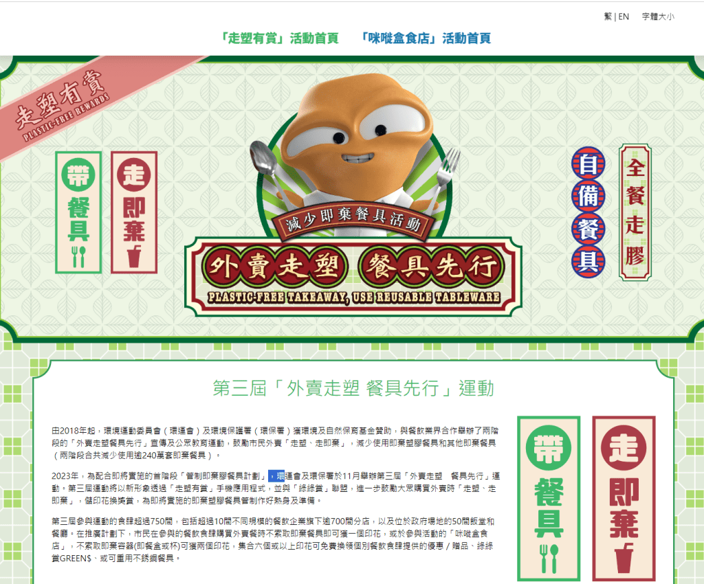 ▲環境運動委員會及環保署于去年11月舉辦第三屆外賣走塑餐具先行運動。走塑有賞網頁截圖
