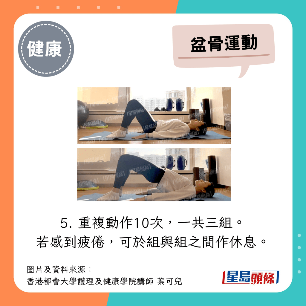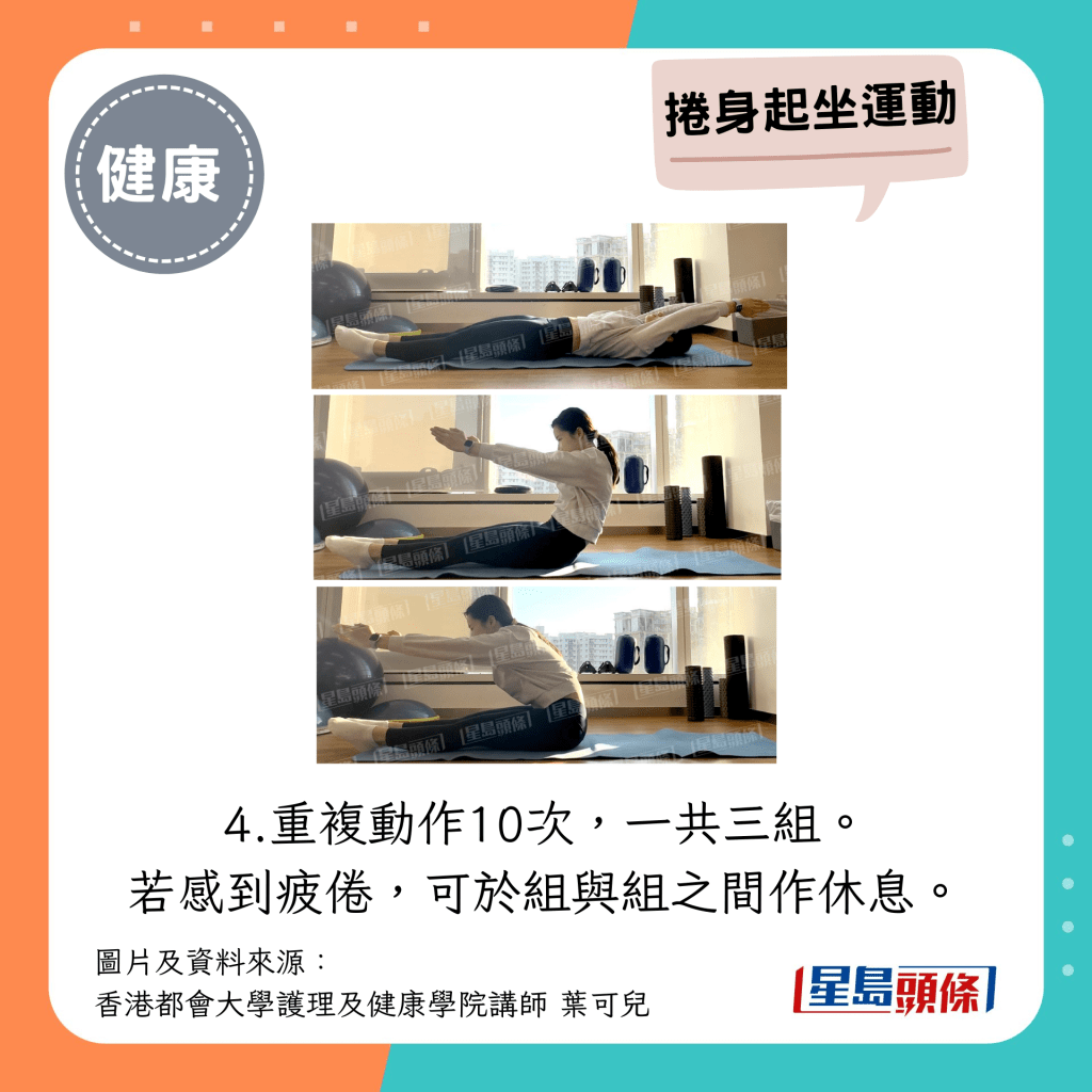 重復動作10次,一共三組。 若感到疲倦,可于組與組之間作休息。