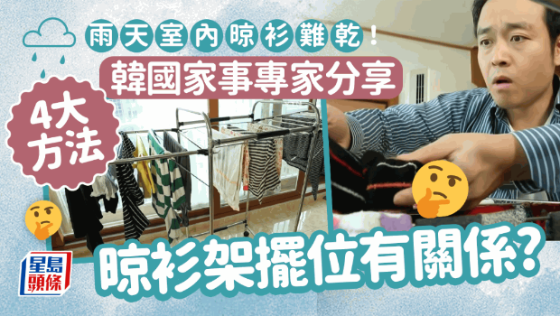 一股潮濕的海洋氣流正影響廣東沿岸。同時,香港天文臺預料料下周初仍然潮濕。農歷新年前氣溫顯著下降。下周天氣仍然潮濕,相對濕度高達逾90%。香港仍持續受到潮濕天氣影響,最令一眾家庭主婦頭痛,衣物常因雨水弄得濕透,同時陰雨綿綿,晴天未見,要干衣、晾衫可謂難上加難!有來自韓國的媒體就為各位分享4招,能有靠于短時間內將沾濕的衣物極速變干,當中有些方法真的頗有趣。