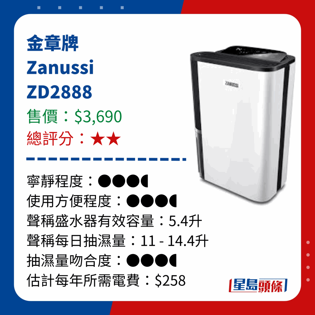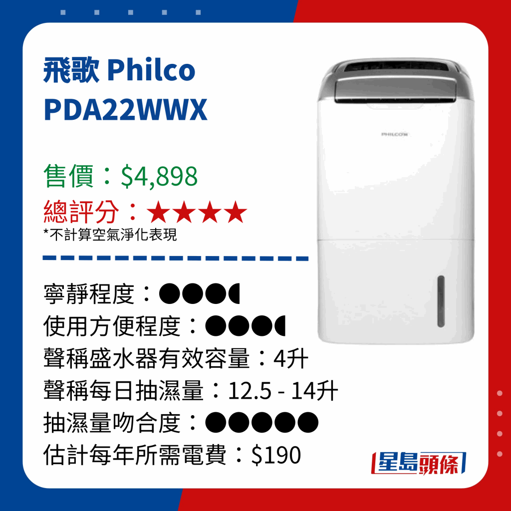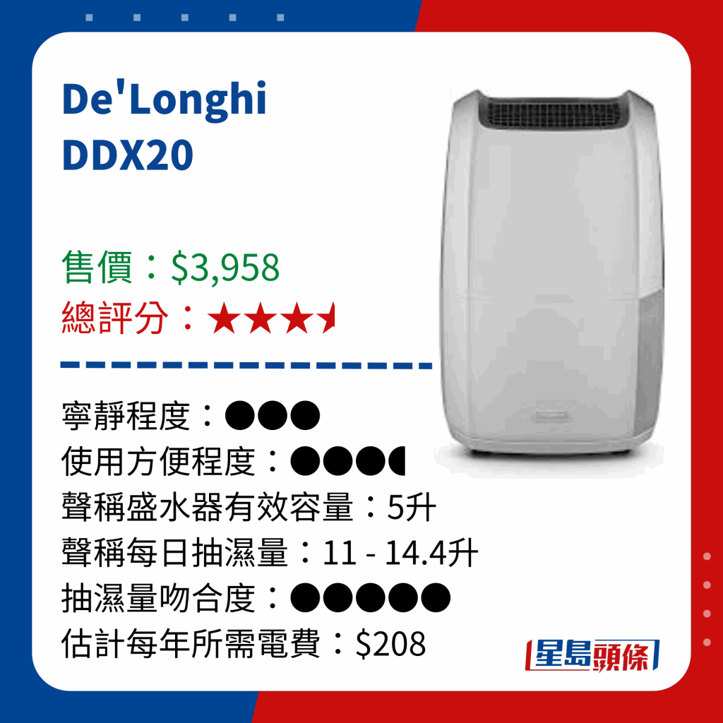 消委會2023年初曾測試了市面10款抽濕機及4款二合一空氣凈化抽濕機,售價由$2,099 - $6,080不等,當中8款抽濕機獲得總評分4星或以上(5星滿分),在抽濕量、使用方便程度及寧靜程度均有不俗表現。 其中三菱電機及LG的表現最為出色,獲得4.5星高評分,抽濕量達每日16-18升,不過兩款抽濕機的售價亦相對較高。