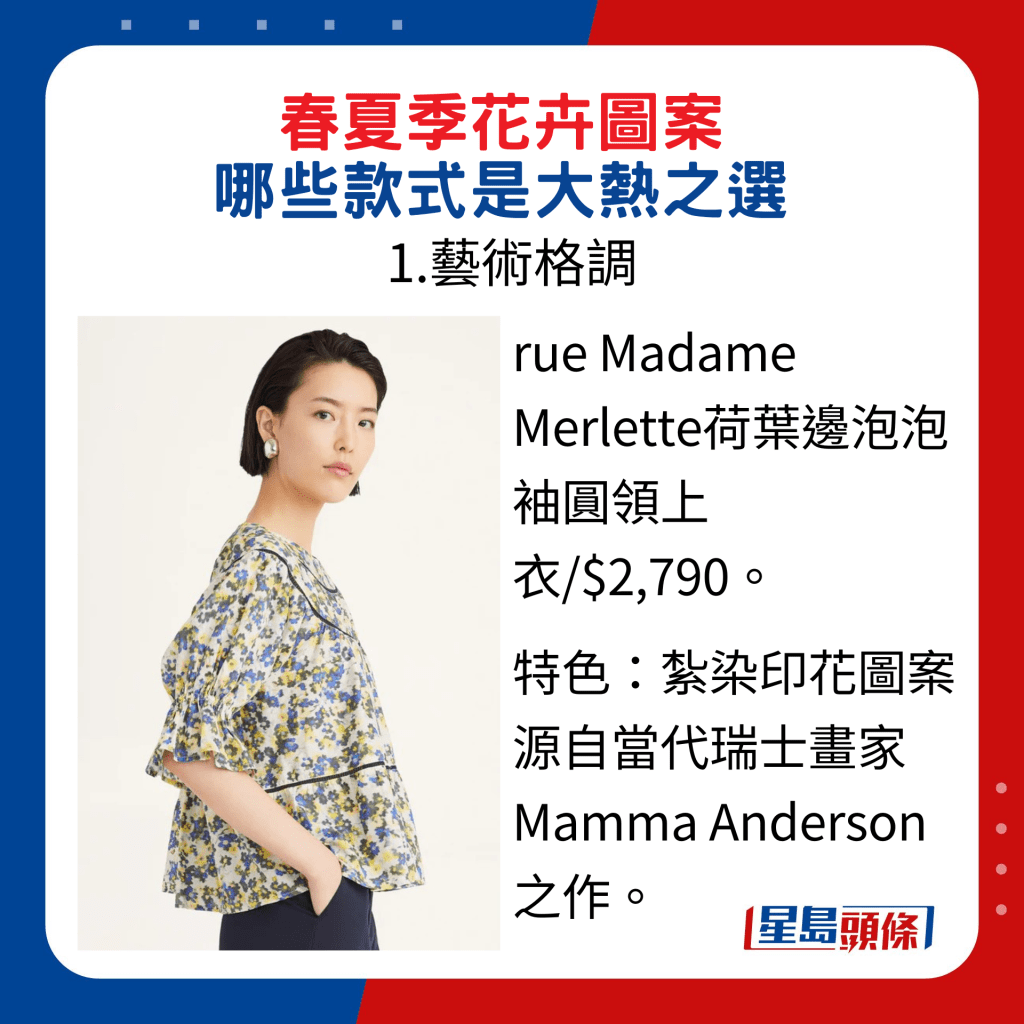 至于云集多個歐美小眾品牌的rue Madame,其中出自Merlette的女裝襯衣,配合荷葉邊及泡泡衣袖等女性化細節,衫身的花卉圖案則從當代瑞典畫家Mamma Andersson的畫作啟發靈感,運用扎染技術塑造更富藝術感的效果。