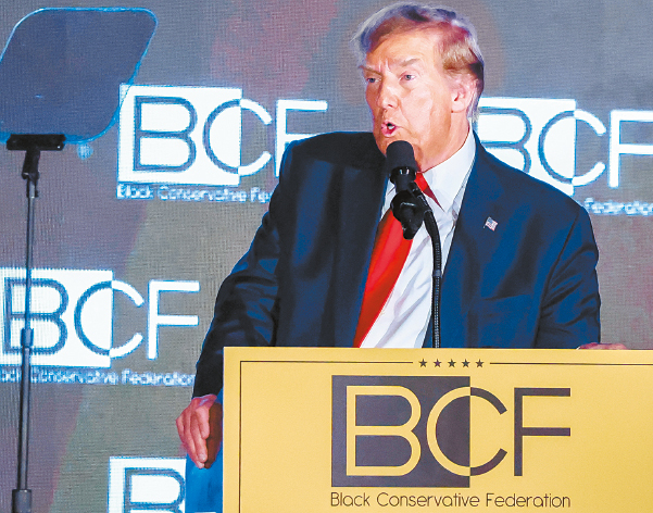 特朗普2月23日在一場晚宴上發表演講。路透社