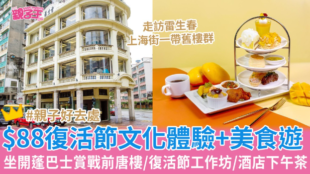 復活節長期假,除了可帶子女到外地旅行,走訪世界各地的名勝古跡,也可以參加抵玩的親子本地游,深入社區了解多點香港本土文化與歷史,認識一下自己的家。 今日(4日)下午3點有親子本地游快閃優惠推介,只需$88即可玩足大半天,既可開蓬巴士欣賞戰前唐樓,還可到酒店參加復活節工作坊,再于酒店嘆個豐富的下午茶。 即睇身復活節好去處詳情,即刻預訂本地游,跟孩子過個充實的復活節。