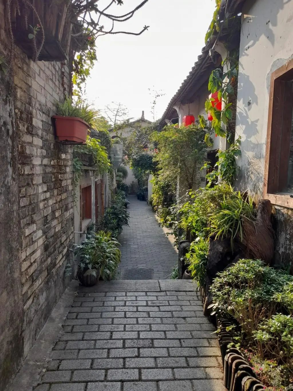 甘坑古鎮有“古城墻、舊牌坊、青石路、老榕樹,還有那鏤刻精美的窗欞,仿佛在娓娓訴說著一個又一個古老的故事”; “走進小鎮,漫步于曲幽通徑的巷弄里。踏著苔花斑斑的青石小路,路邊家家戶戶種滿了五顏六色的鮮花,一片綠意盎然”。