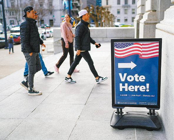 ▲“超級星期二”前一天,選民前往舊金山市政廳投票中心提前投票。路透社