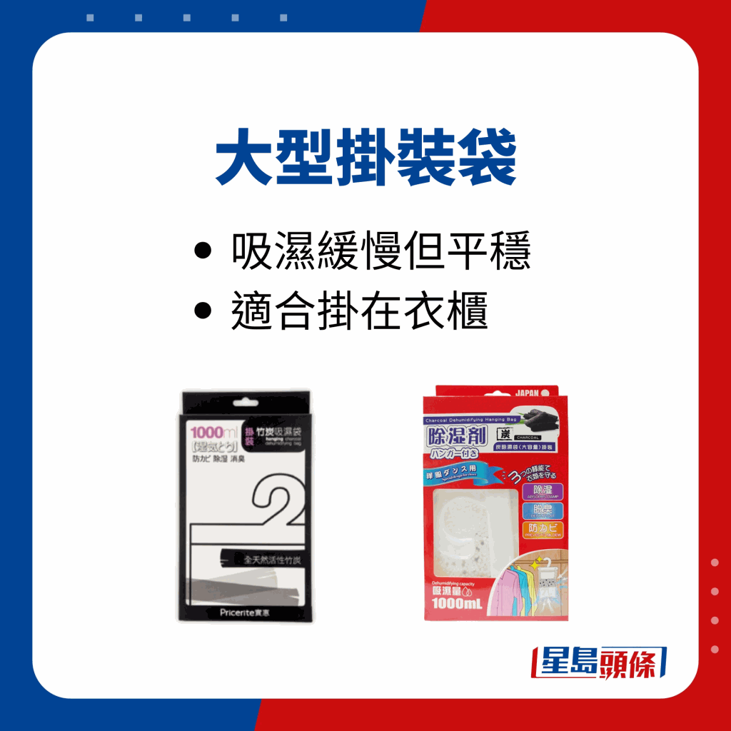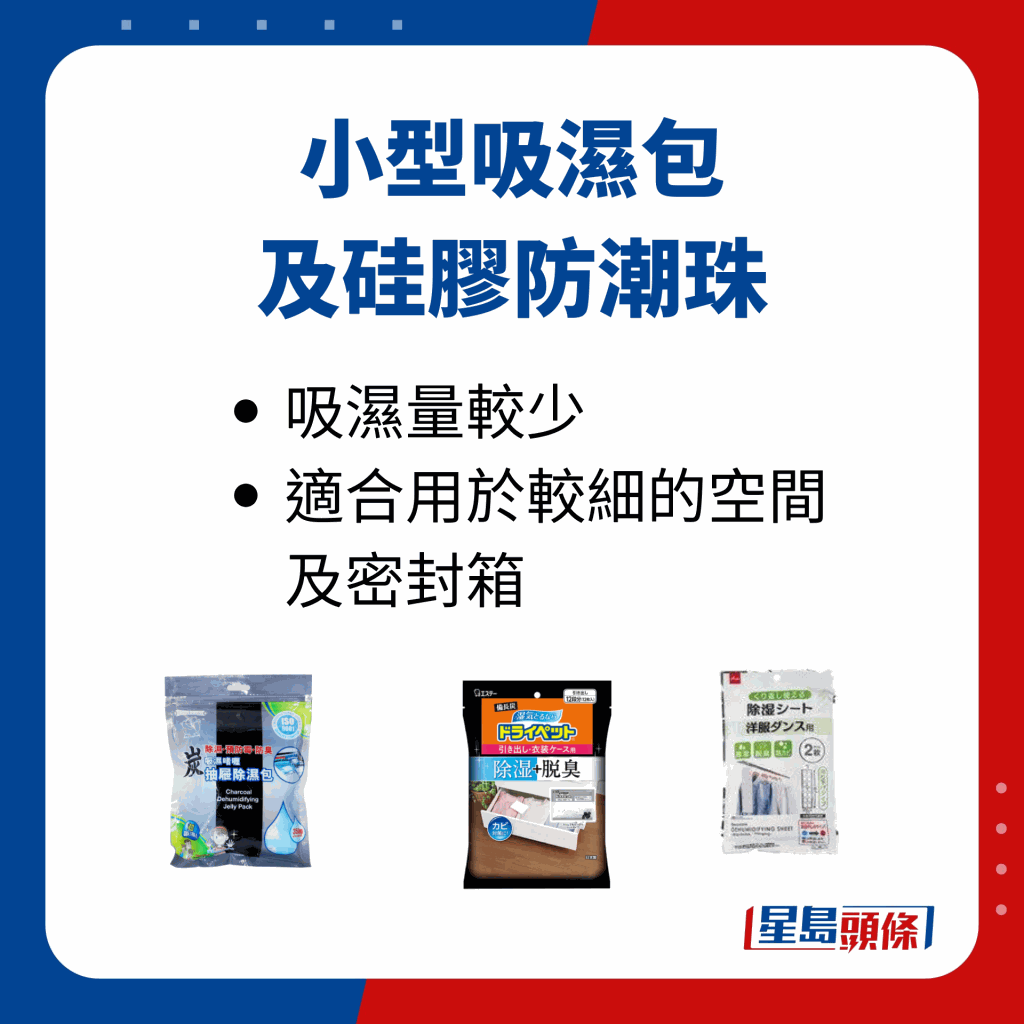 回南天空氣潮濕,香港天文臺預枓未來9天相對濕度將維持70%至95%的高水平。要對付潮濕天氣,除了使用抽濕機或長開冷氣機,亦可以將吸濕劑放置于衣柜、鞋柜及儲物柜中,幫助除濕防霉。消委會過去曾測試吸濕大笨象、白元、日本城、實惠等巿面上20款家用吸濕盒、吸濕掛袋及竹炭包,發現各樣本的吸濕量、速度等效果懸殊,某些樣本的吸濕效能更近乎零。即睇消委會推介名單及使用小貼士!