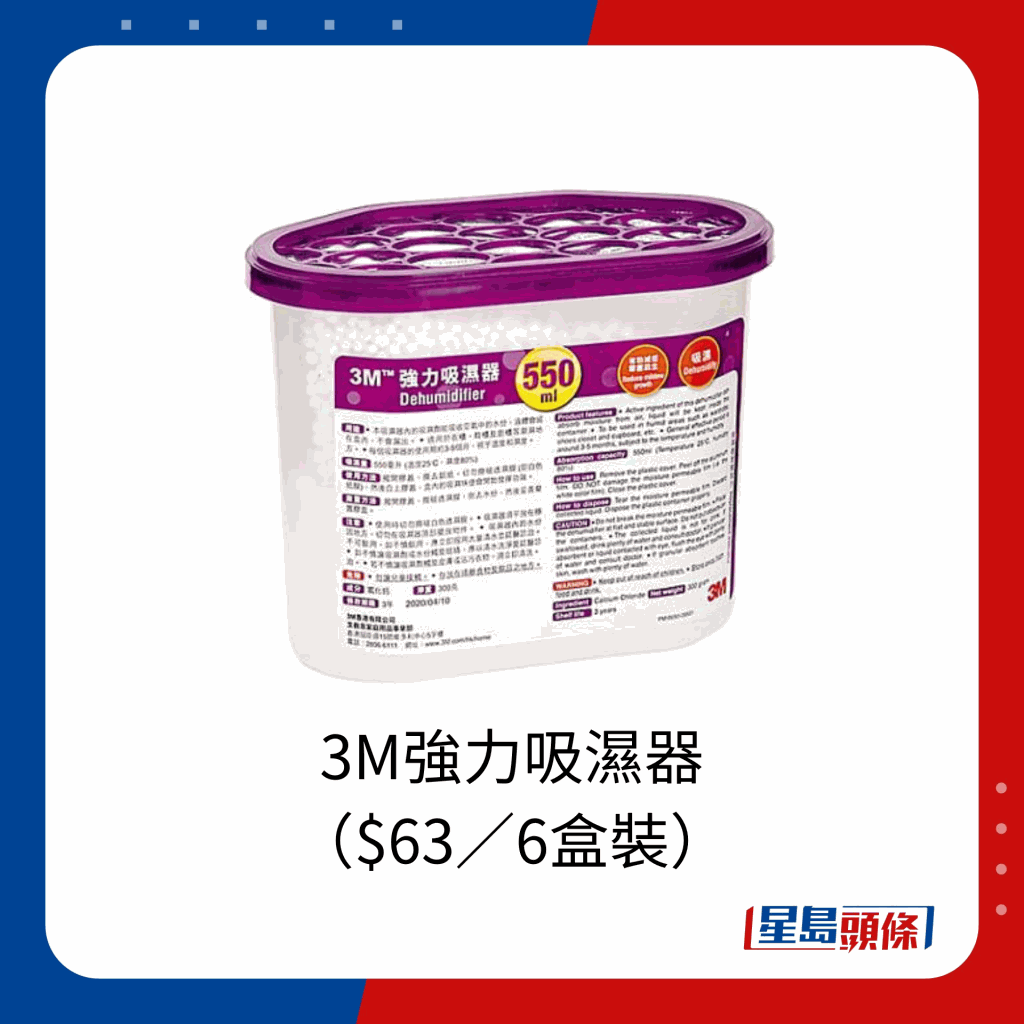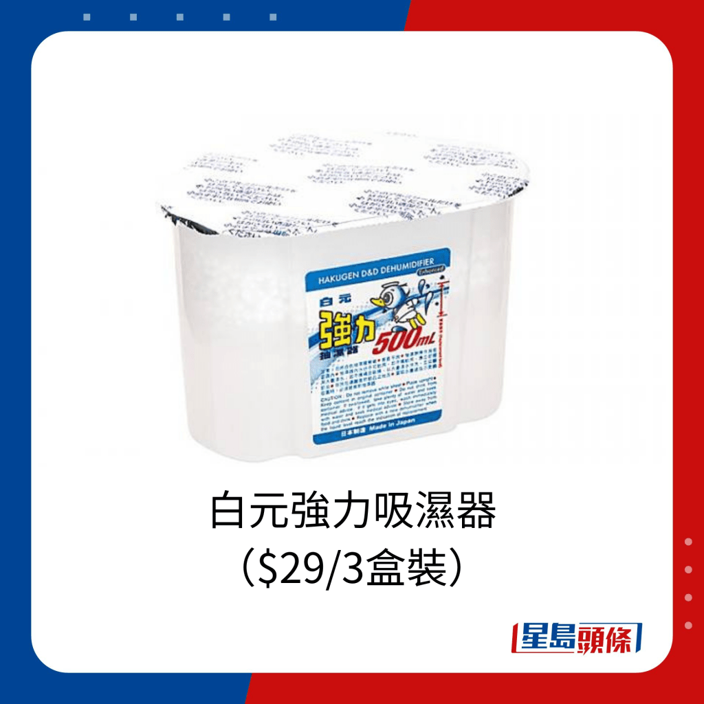 在消委會20款測試樣本中,白元強力吸濕器($29/3盒裝)表現最好,是唯一一款總評分獲5星滿分的家用吸濕劑,吸濕量是所有測試樣本中最高,達305毫升,售價亦非常相宜,平均每盒只需$9.7。