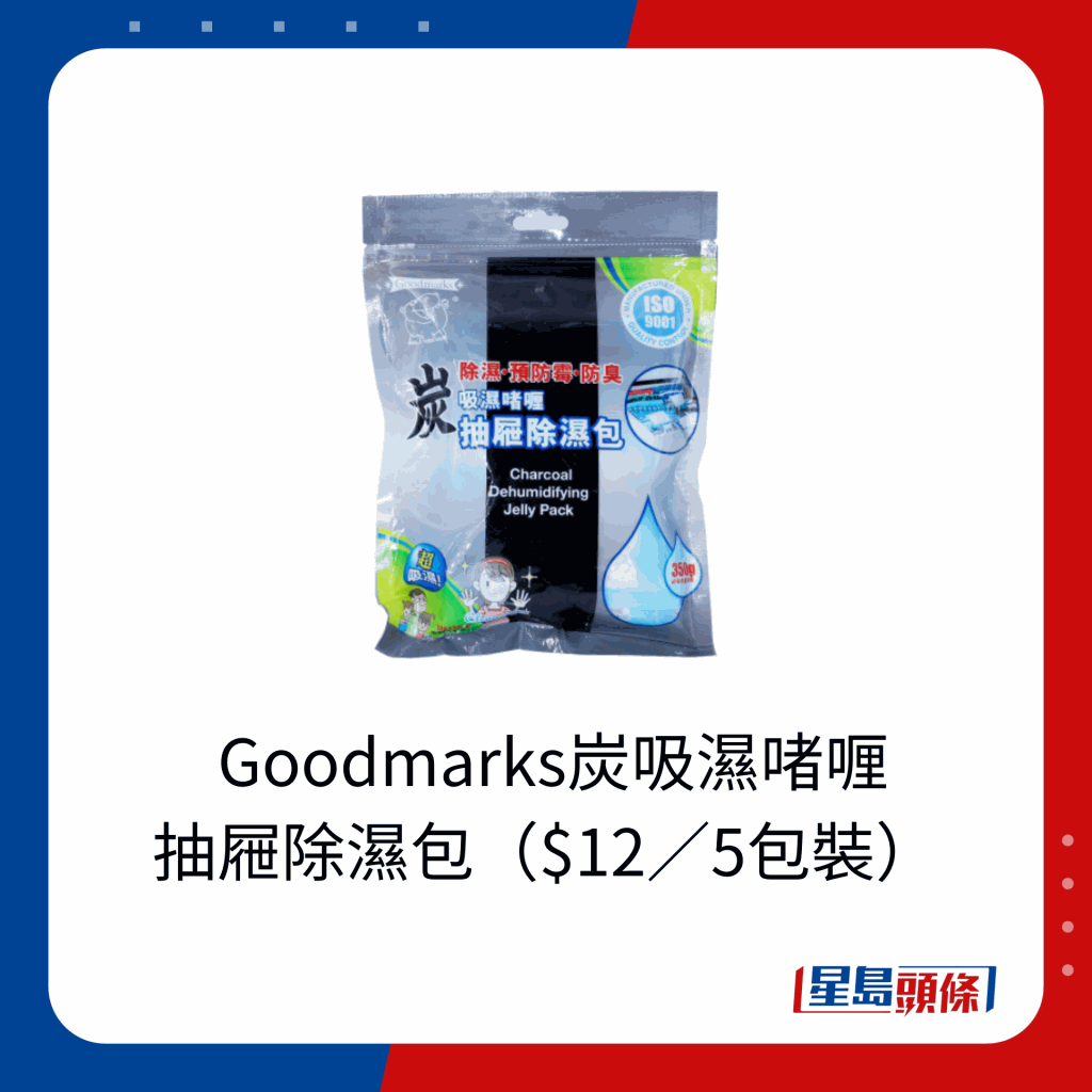 13、Goodmarks炭吸濕啫喱抽屜除濕包($12/5包裝)