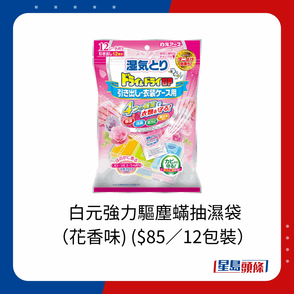 14、白元強力驅塵螨抽濕袋(花香味)($85/12包裝)