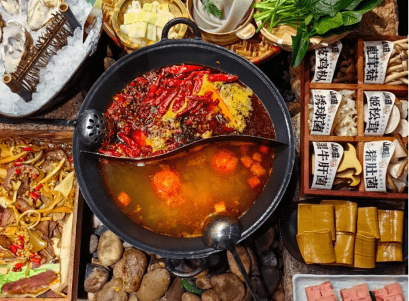 來自云南的野生菌火鍋店——蕓山季,才在深圳開業一年,已經開設了10家分店! 這家店以云南直送食材為賣點,并由當地籍的廚師團隊主理。 店內的招牌湯底采用了18種云南名貴野生菌,再加上飼養了百日的走地雞,熬煮了整整8小時。 一口喝下去,湯頭濃郁鮮甜,雞肉則帶著香脆的皮和滑嫩的肉質。 在享用湯頭之后,便可以下火鍋料,其中必點的是當季的野菌拼盤。 所有的野生菌都是從云南3000米高山上親自采摘而來,經過冷鏈運輸到店。 此外,還提供多款地道的小吃,如苦茶酥紅豆、花瓣炸牛奶和玫瑰乳扇等。
