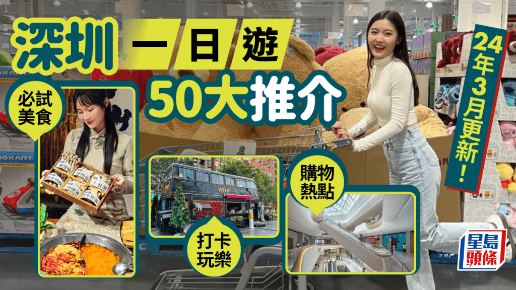 深圳好去處2024/最新景點(3月更新)|深圳一日游食買玩全攻略! 深圳好玩景點及推介美食極多,一日絕對玩不完。 喜歡購物的可以去今年全新開幕的俄貨超市、Costco,上年度的新商場KK Time、睿印RAIL IN、中洲灣C Future City亦非常吸引; 喜歡自然景觀的不妨挑戰“三徑三線”; 打卡玩樂則可到全新深圳美術館、艾尼摩神奇樂園、環西麗湖綠道等。 以下整合33大深圳旅游熱點的交通及開放時間數據,再加上17大深圳必試美食,包括火鍋、港式點心、抵食海鮮市場等,立刻拿起回鄉證,出發來一場深圳短旅行!