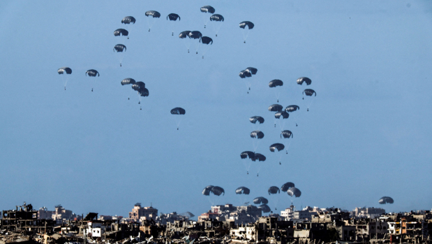 根據社交媒體上流傳的一段據稱在沙提難民營拍攝到的影片,一架飛機在加沙北部空投載有救援物資的包裹,其中至少有一個降落傘沒有正常打開,導致多個包裹高速砸向地面。與此同時,在一片尖叫聲中,人們四散逃去。