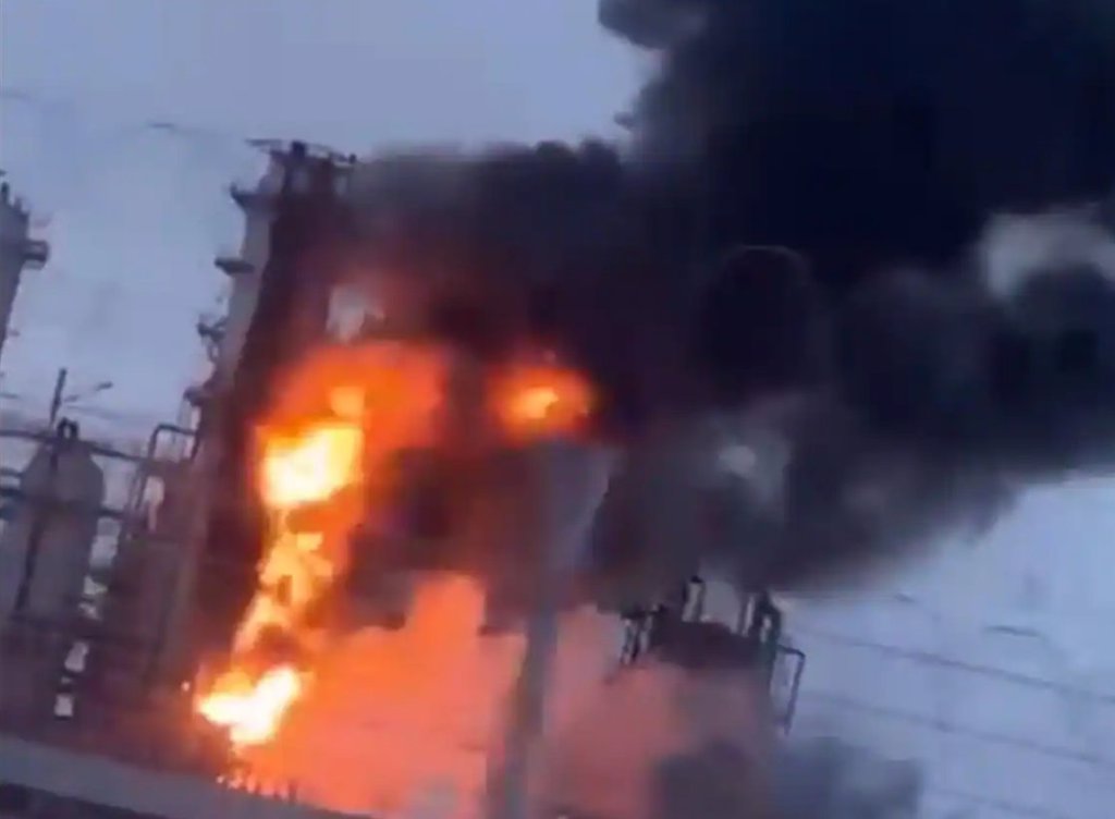 ▲距烏克蘭820公里的俄羅斯煉油廠遭到無人機打擊。(圖/X)