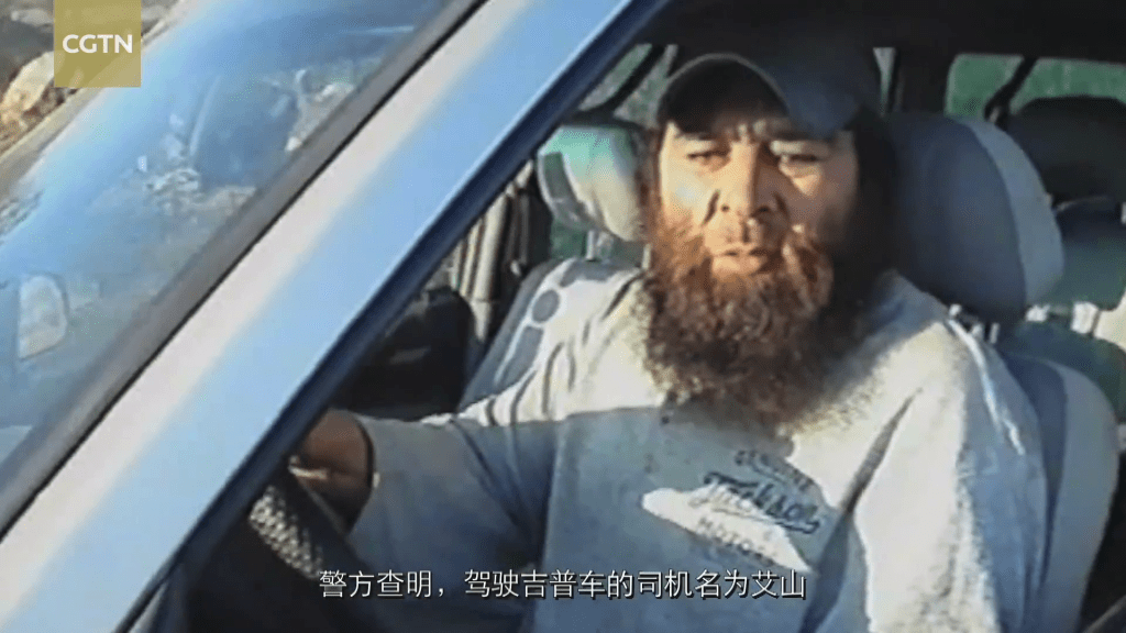 ▲吉普車沖撞人群,有人閃避不及被撞飛。 中國環球電視網截圖
