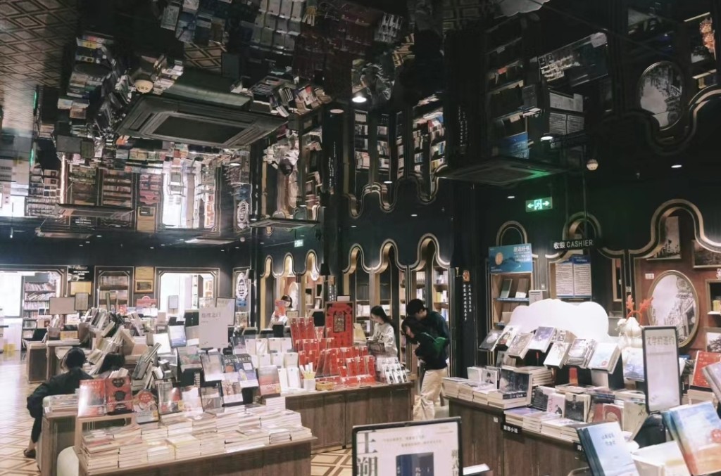 ▲米谷書店:30米高的書墻十分震撼,恍如置身電影《哈利波特》的魔法學校圖書館,沉浸式擁抱書海,于是人人打卡,熱爆網絡。 (圖片來源:微信@米谷書店)