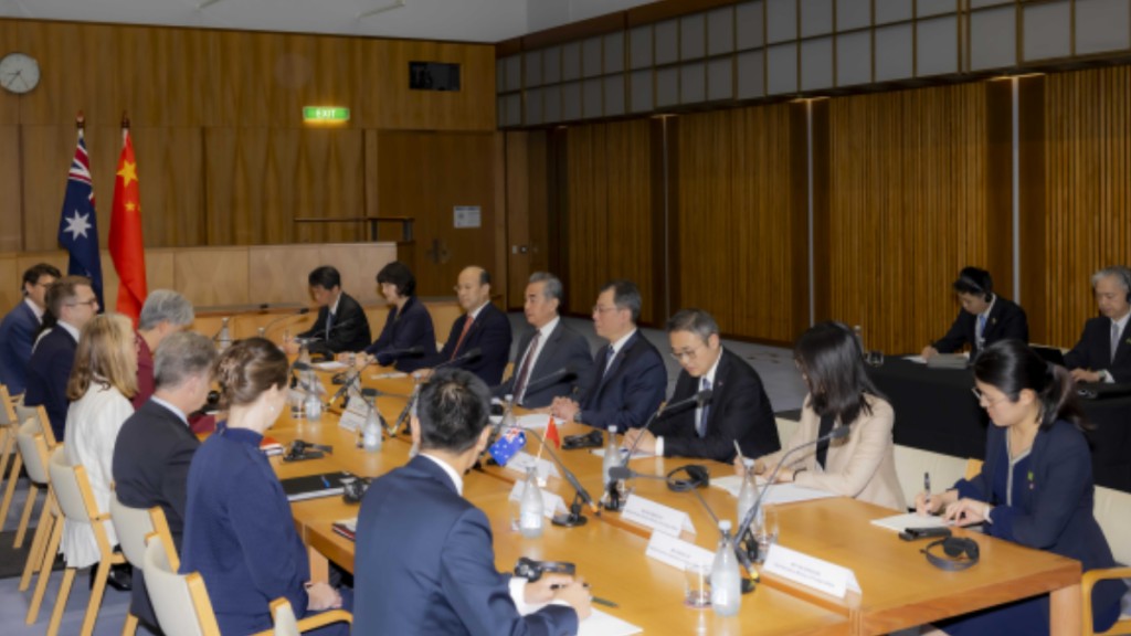 王毅闡述了中方在臺灣、涉港、涉疆、涉藏、南海等問題上的原則立場,強調中澳兩國之間沒有歷史恩怨糾纏,沒有根本利害沖突,共同利益遠大于分歧。雙方要踐行尊重國家主權和領土完整這一國際法基本準則,尊重彼此核心利益和重大關切,推動兩國關系持續穩定健康發展。