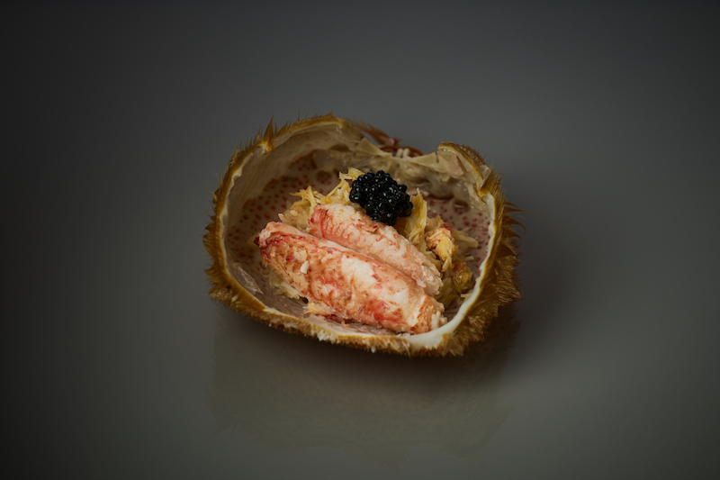 由大阪米其林二星鮨店“壽司芳”(Sushiyoshi)主理人兼大將 Hiroki開設的香港分店, Hiroki向來以創意無限,融匯和洋技巧的酒肴、壽司而聞名中外。 去年10月,他更決定宣布移居香港,以香港店為基地,當時他移居香港后的首個新餐單,更選擇了港人愛的時令食材—大閘蟹,并融入不少西式烹調技巧,創作成十五道菜的大廚發辦,可謂匠心獨運。
