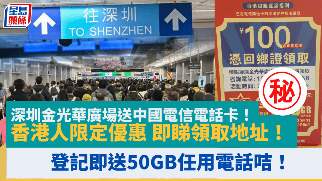 位于深圳羅湖商業區的金光華廣場日前向香港人免費送出中國電信電話卡!是次活動送出的電話卡包3個月50GB流量加通話,港人只需要憑回鄉證即可立即換領,對于不時北上深圳玩樂的港人來說的確非常方便,又可以節省購買電話卡的費用,近日計劃北上的話緊記順道去登記。