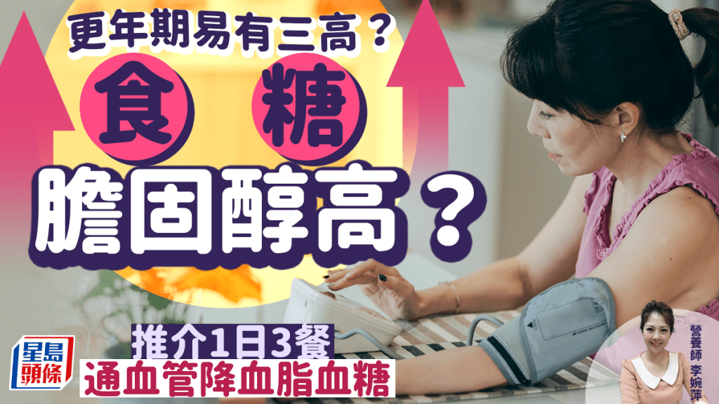 更年期不只容易潮熱、失眠,更會被“三高”(高血壓、高血糖、高血脂)纏身? 有營養師指,更年期過后,有5大因素令女性患三高風險大增。 吃太甜易致高膽固醇? 營養師教6招遠離三高,并建議1日3餐健康餐單,有助通血管,降血脂、降血糖。