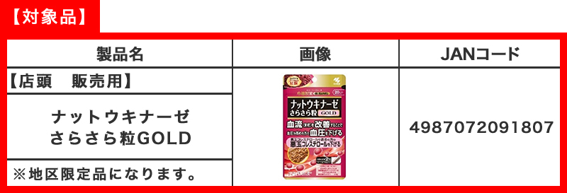 ▲須回收的“ナットウキナーゼ さらさら粒GOLD”。(圖片來源:小林制藥網站)