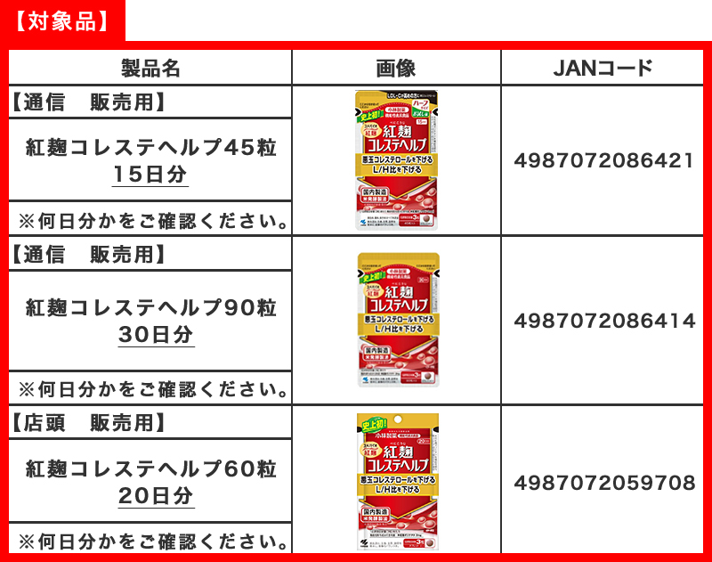 ▲須回收的“紅麹コレステヘルプ”。(圖片來源:小林制藥網站)