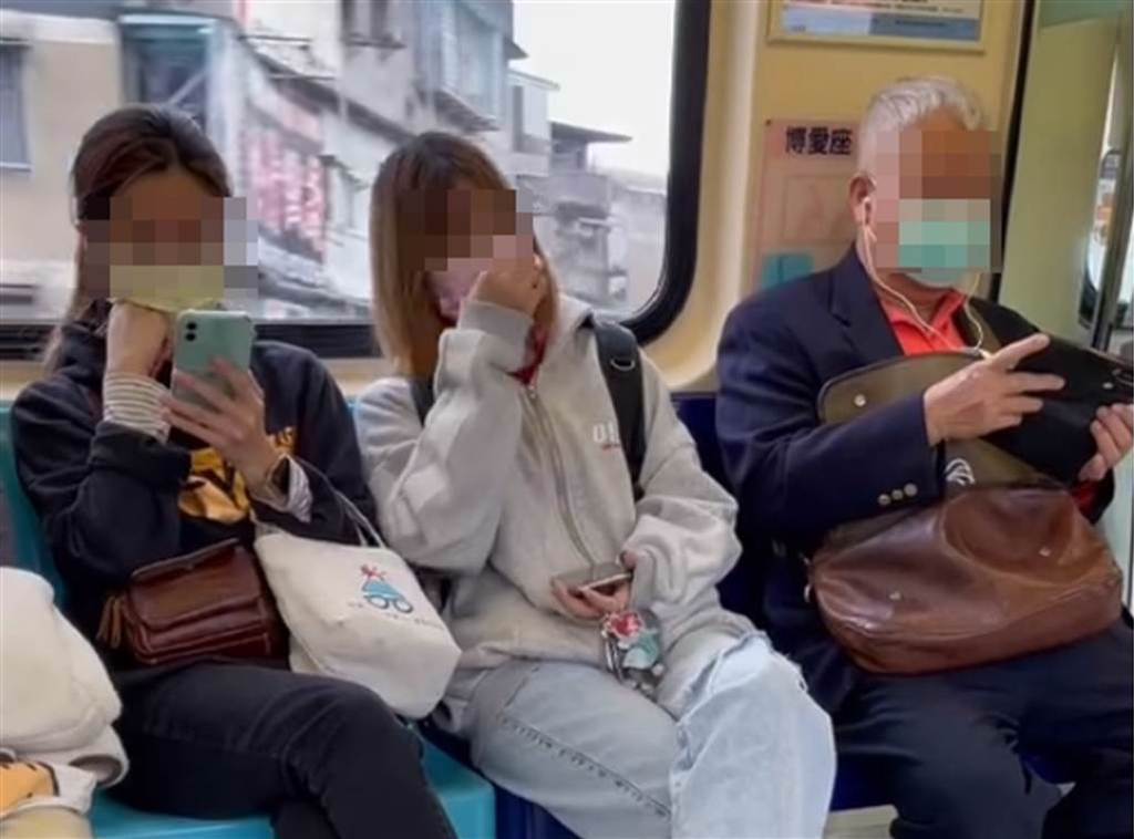 ▲阿伯捷運看謎片“耳機忘插好”,一旁女生笑爆身體狂抖。(圖 / 截自《爆廢公社二館》)