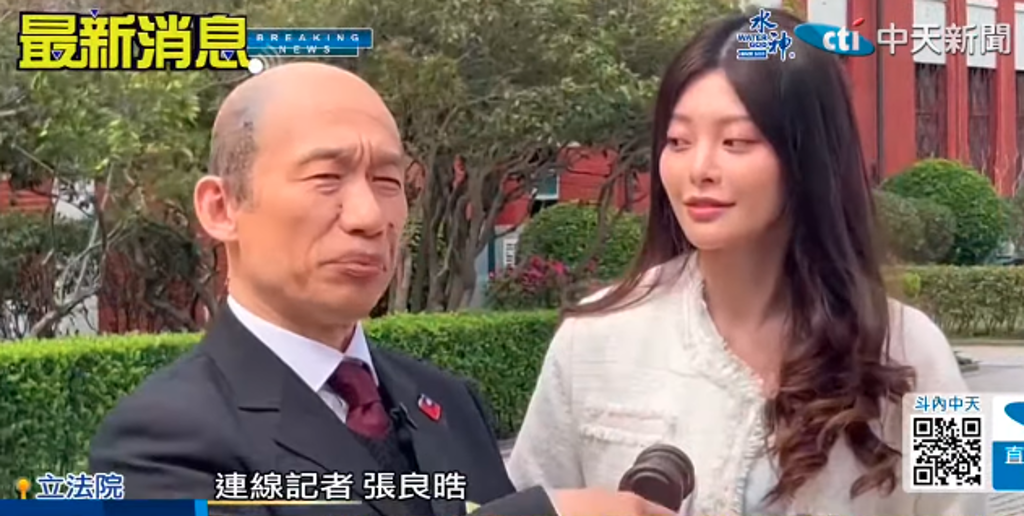 ▲郭子乾今化身“韓國魚”(左)前往“立院”拍片。 中天新聞YouTube