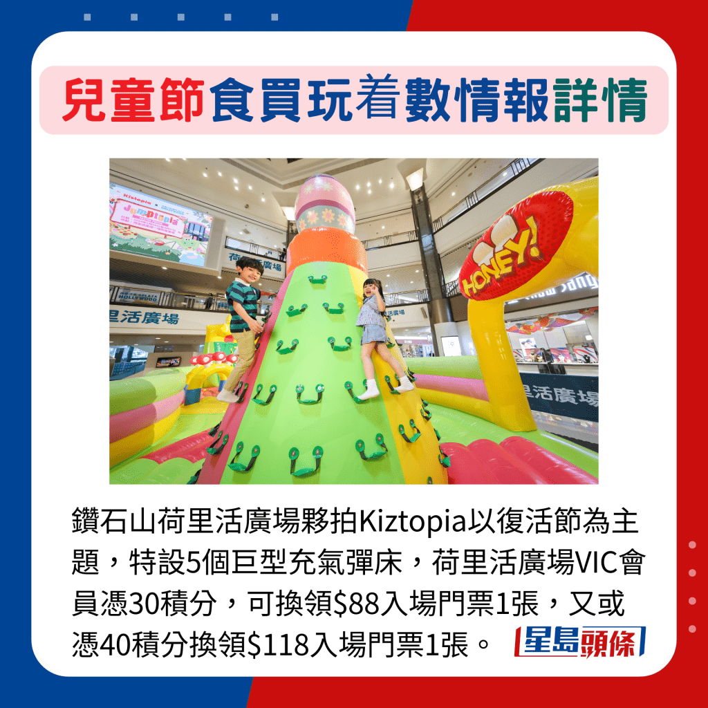 ▲荷里活廣場VIC會員憑指定積分,可換領荷里活廣場 x Kiztopia巨型充氣彈床入場券。
