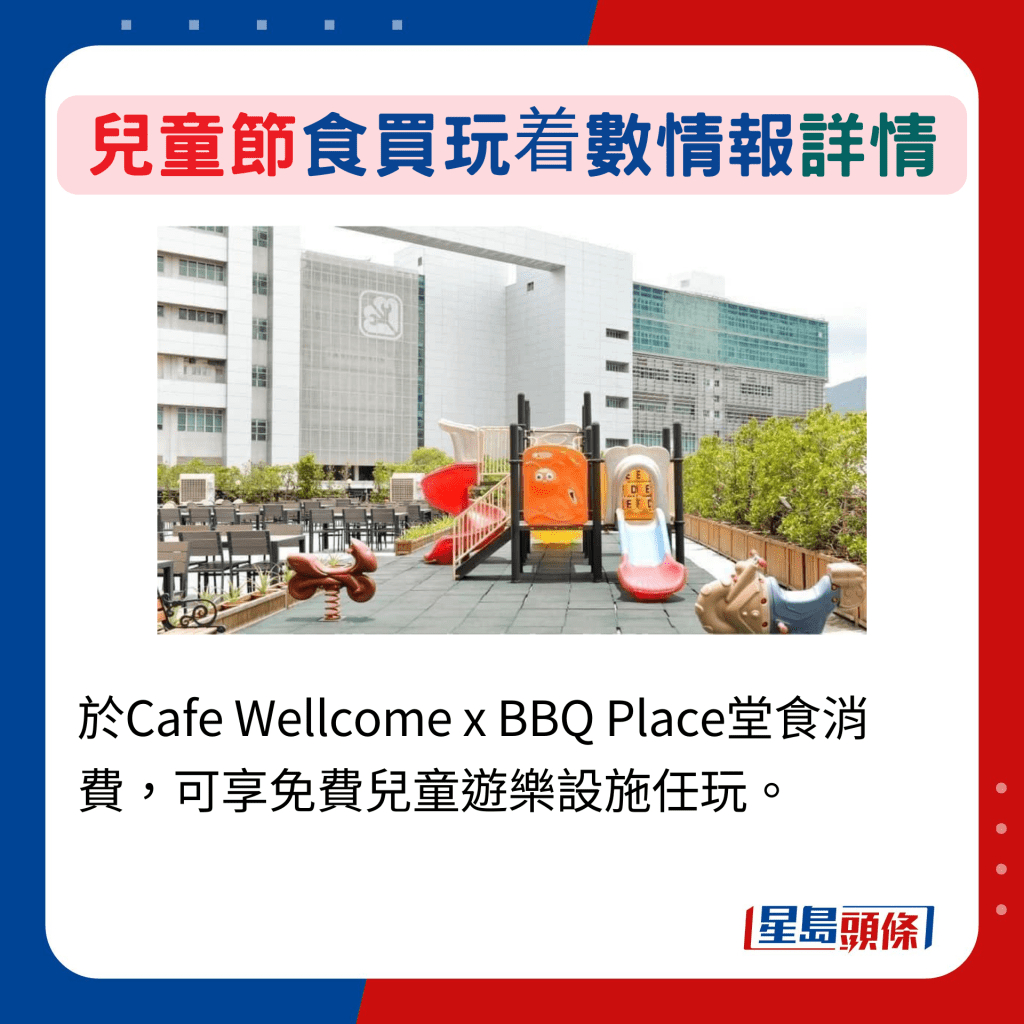 ▲于Cafe Wellcome x BBQ Place堂食消費,可享免費兒童游樂設施任玩。