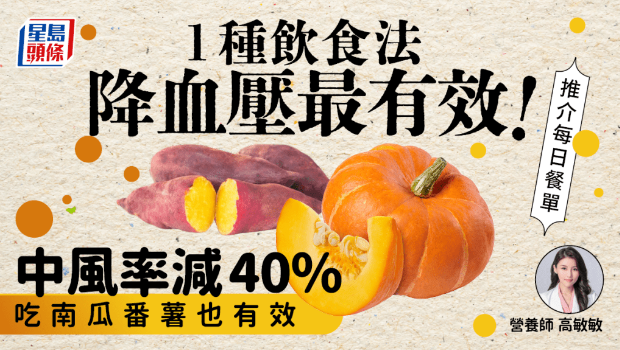 血壓高可如何改善?多吃南瓜、番薯可降血壓?有營養師推薦1種飲食法“得舒飲食”,只要多吃特定種類的食物,就能有效控制血壓,從而降低近40%中風機率,更可減低患心臟病、猝死等風險。