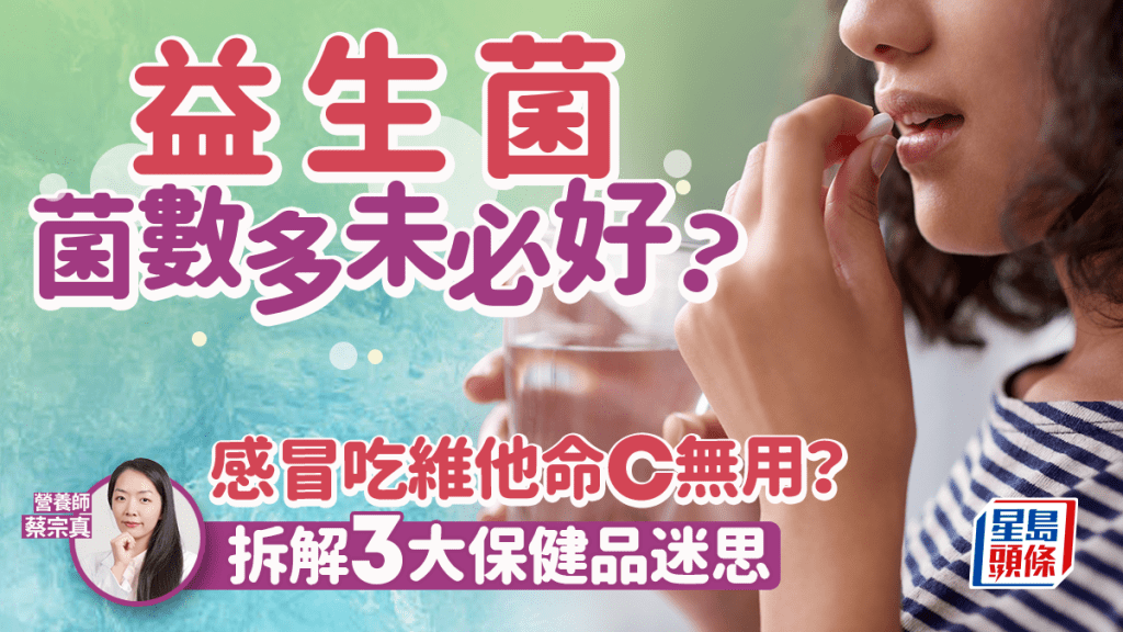 她講解有關益生菌、維他命B雜、維他命C等保健品的3大常見迷思,拆解謬誤,并教正確服用方法。
