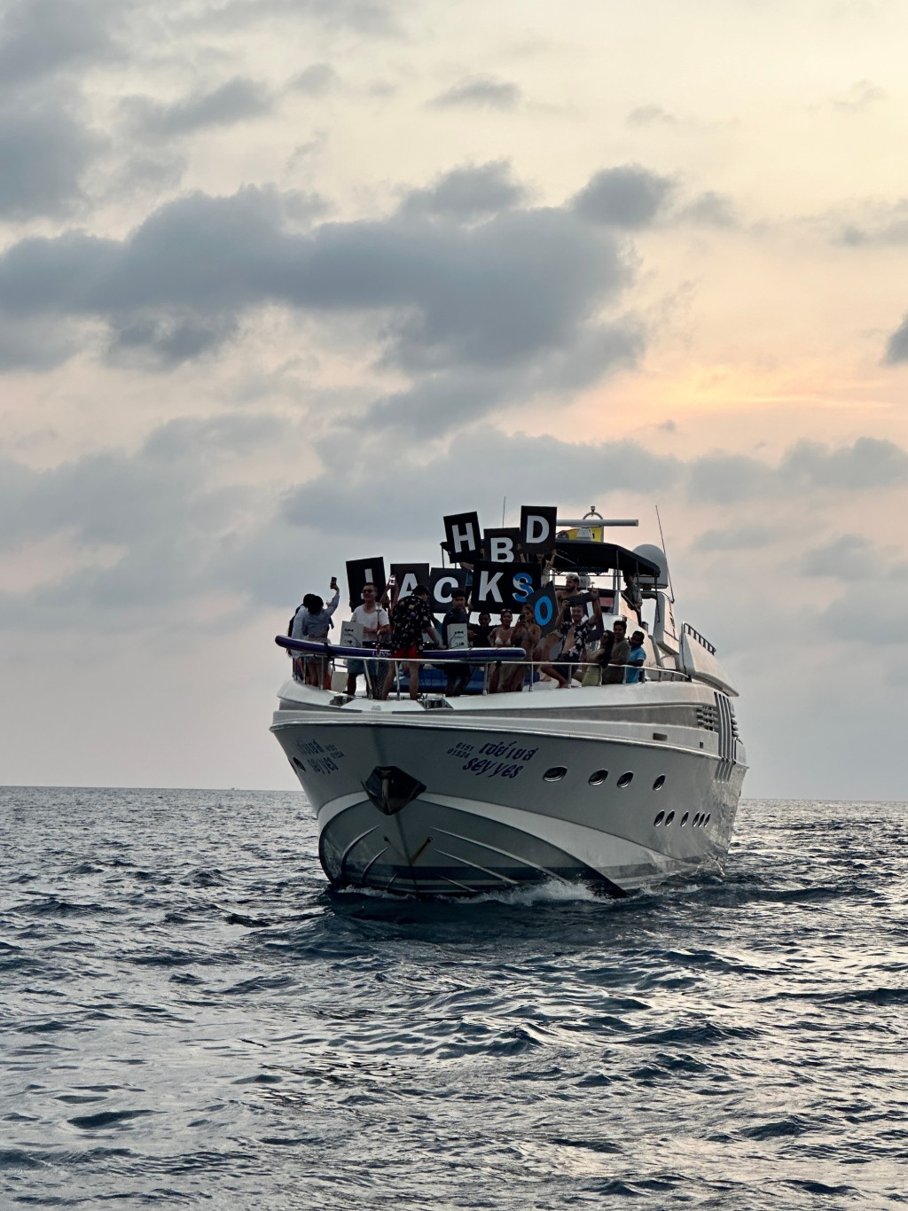 王嘉爾從27日起就在布吉舉辦“TEAM WANG INTERNATIONAL SCHOOL”生日派對,與父母及一大班朋友一起慶祝,他更非常用心地為每一位來賓準備一張附有名字和照片的學生證、活動手冊,也安排了豐富的節目如煙火騷等?,F場有不少身穿火辣比堅尼的索女,又有安排性感女郎跳舞,而沙灘上還做了一個巨型雕像,寓意“巨人”的意思。張馨月都有分享派對中眾人狂歡的照片,亦有到巨型雕像前打卡,不過她似乎沒有玩足四天,因為張馨月今日(31日)已分享一張身穿一條透視低胸長裙的照片,并指為出席上海時裝周而穿。
