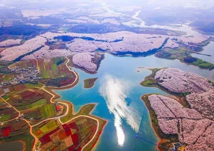 貴州平壩萬畝櫻花園。這里是全世界最大的櫻花基地,整體面積超過2.4萬畝,超過70 萬株的各色櫻花盡數點燃,塑造地球上最壯美的“櫻花世界”。
