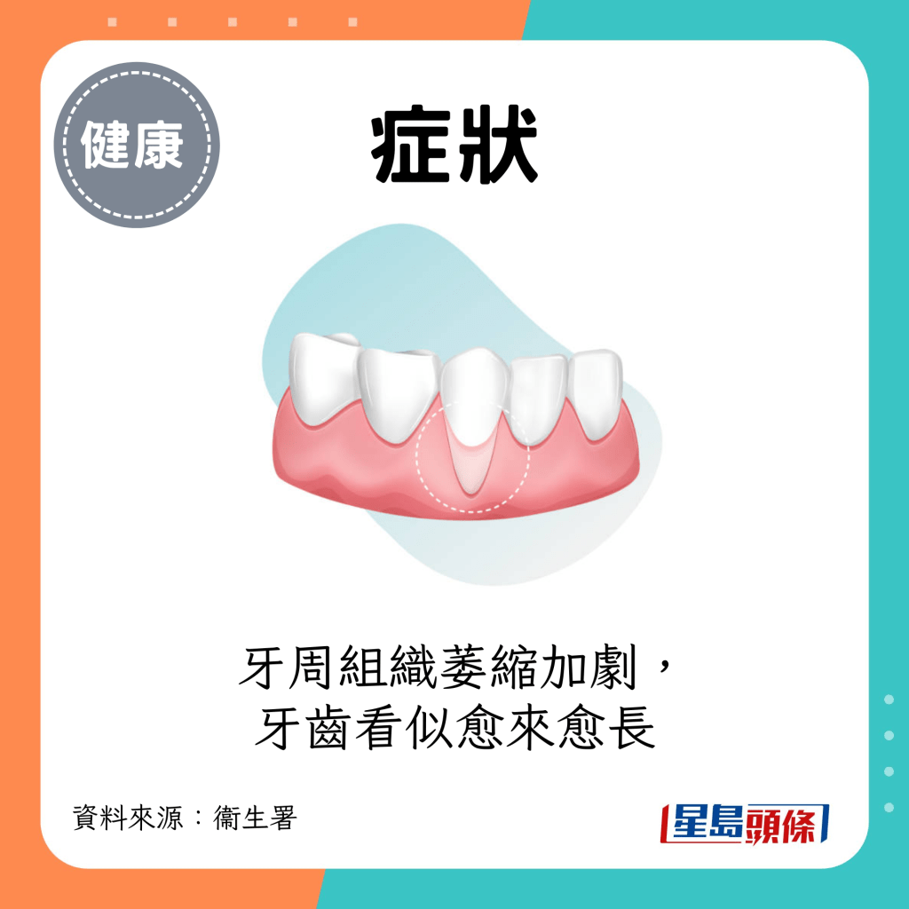 牙周組織萎縮加劇,牙齒看似愈來愈長