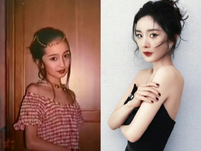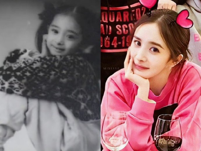 ▲楊冪粉絲曾將偶像長大后的照片跟童年照對比。