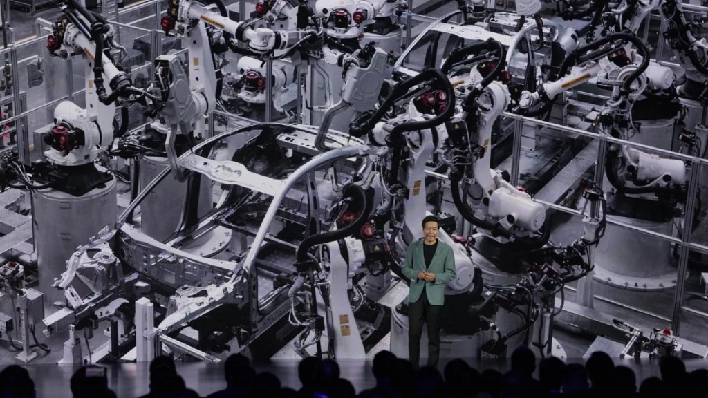 位于北京亦莊的小米汽車超級工廠高度智能化,實現大壓鑄、衝壓、車身連接等關鍵工藝100%自動化,引入超過700個機械人,包括自動巡檢機械人、AMR自主移動機械人等。產能跑滿后,平均76秒即可下線一臺新車。