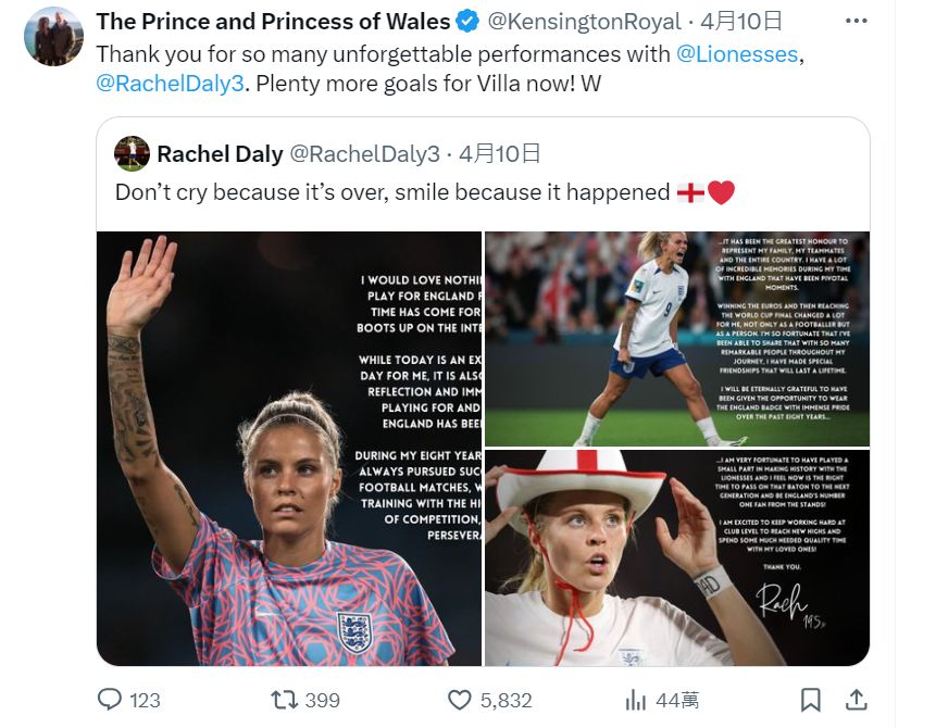 英國凱特王妃(Kate Middleton)今年1月中旬在倫敦入院開刀,超過2個月沒有公開露面,3月23日透過影片向大眾親口說明自己罹癌,正在接受治療,丈夫威廉王儲(The Prince of Wales)一直暫停所有公開活動,低調地在凱特身邊陪她度過所有難熬的治療。凱特親口證實罹癌之后18天,威廉首次公開露面與長子喬治一同現身伯明罕維拉公園球場(Villa Park),觀賞英超球隊阿士東維拉(Aston Villa)的聯賽賽事。