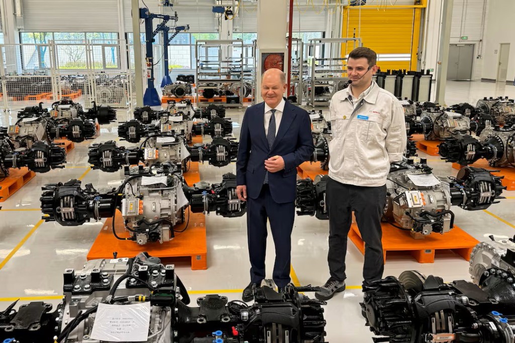 ▲德國總理朔爾茨參觀在華的德國企業。路透社