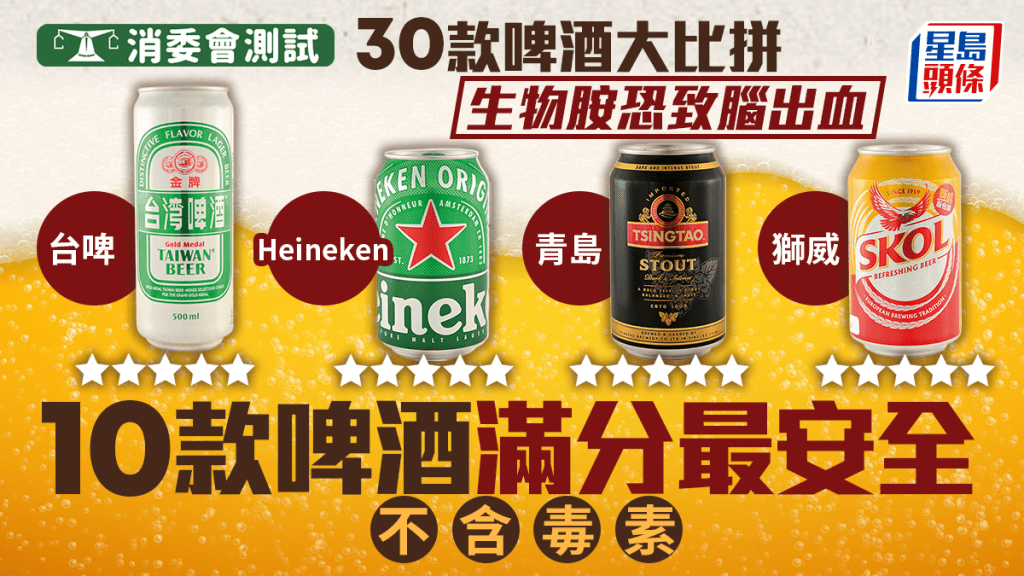 ▲消委會啤酒滿分安全推介名單:香港啤酒公司。
