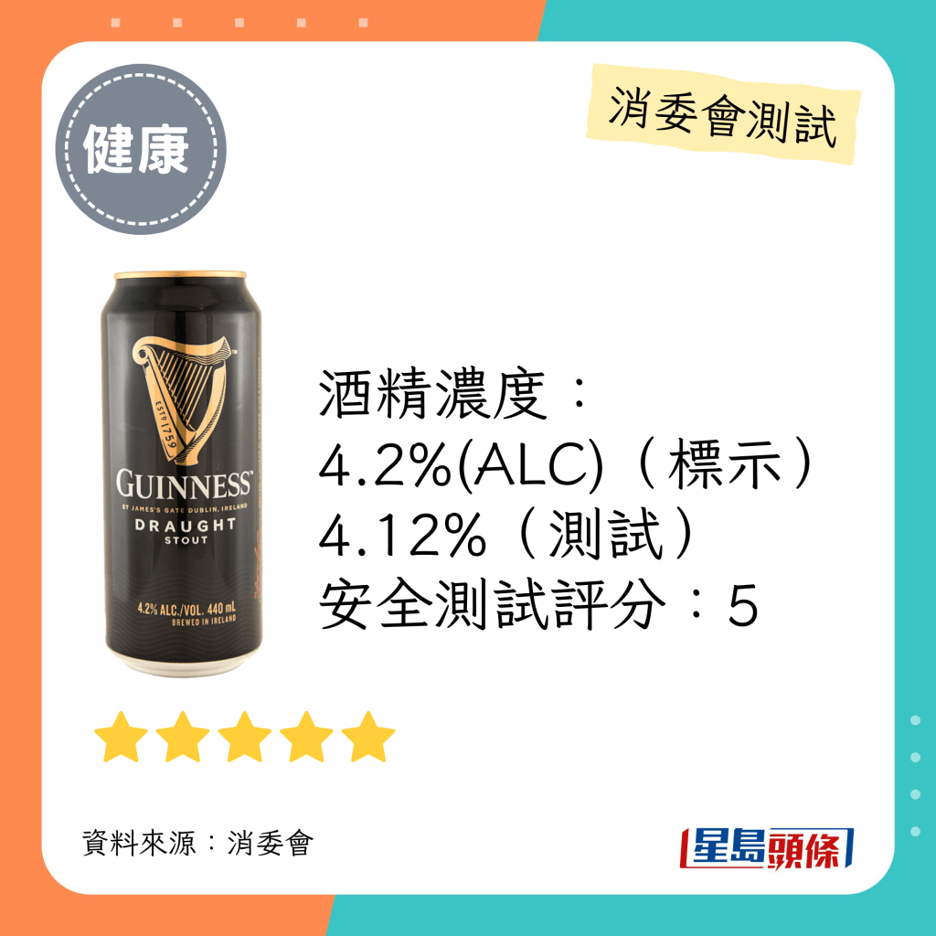 ▲消委會啤酒滿分安全推介名單:Guinness。