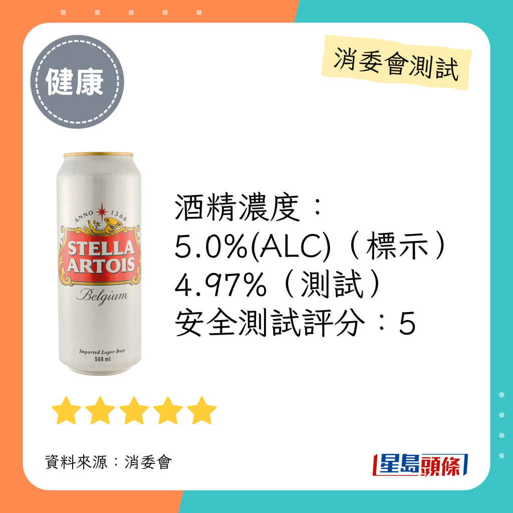 ▲消委會啤酒滿分安全推介名單:STELLA ARTOIS。