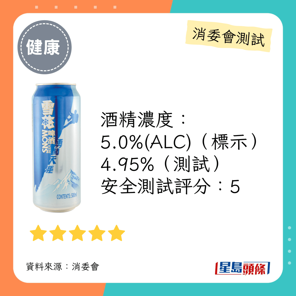 ▲消委會啤酒滿分安全推介名單:雪花 SNOW。