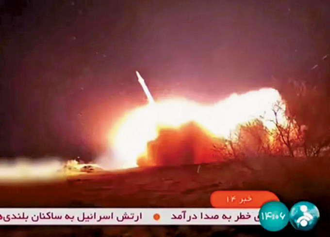 ▲伊朗國家電視臺播放向以色列發射導彈的畫面。