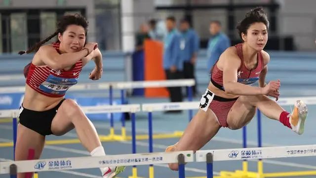 ▲湖南隊選手夏思凝在女子60米欄決賽以8秒28的成績奪冠。 新華社