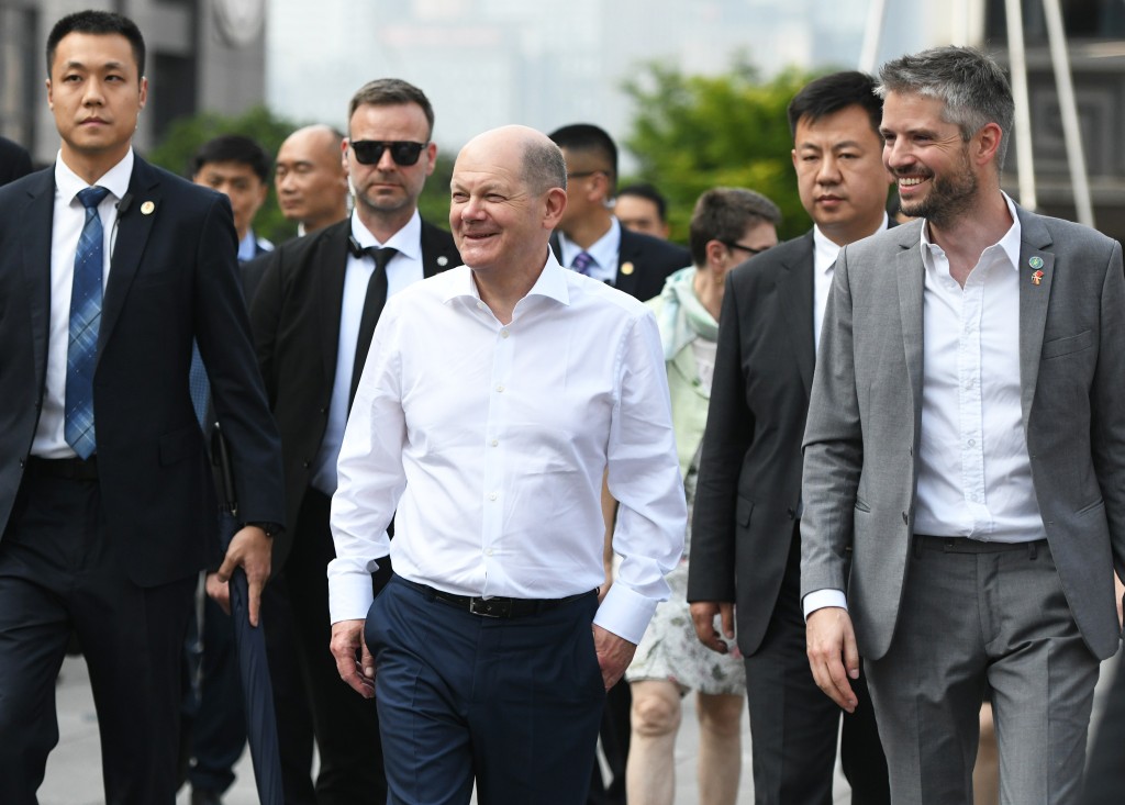 ▲4月14日,德國總理朔爾茨抵達重慶,開啟訪華之旅。(中新社)