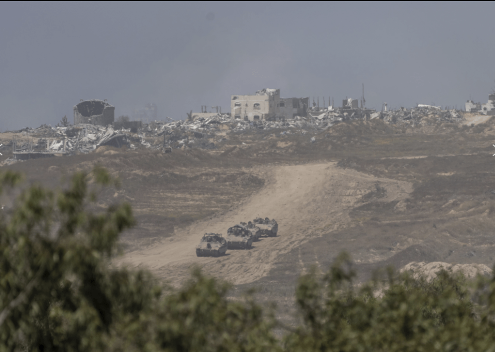 ▲周三,以色列坦克越過加沙邊境。美聯社