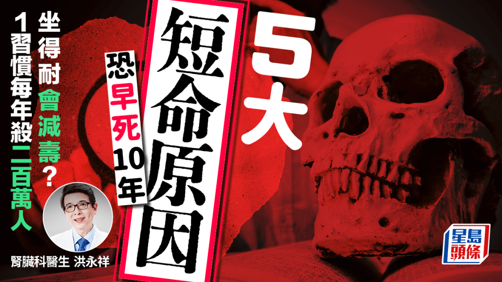 腎臟科醫生洪永祥在其Facebook專頁發文指,壽命長短除了與先天基因有關,也受日常生活習慣影響,當中有些都市人的常見習慣會在不知不覺間令人縮短壽命。他整合來自不同國家的研究報告,歸納出5大短命原因,希望大眾多加留意。到底排第一位的是什么?