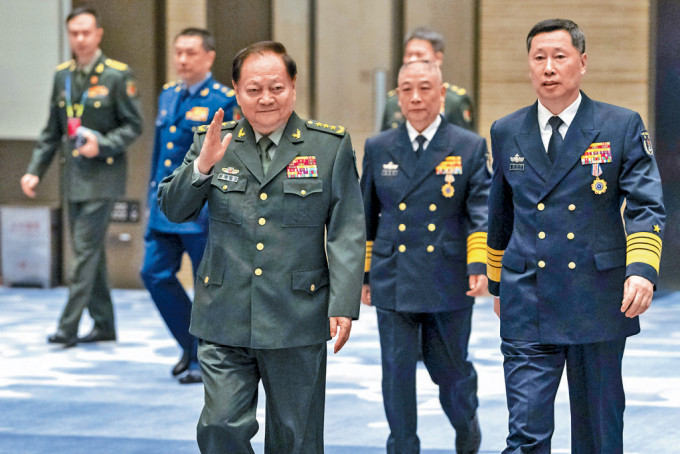 ▲中央軍委副主席張又俠(前左)昨日出席年會前揮手致意。
