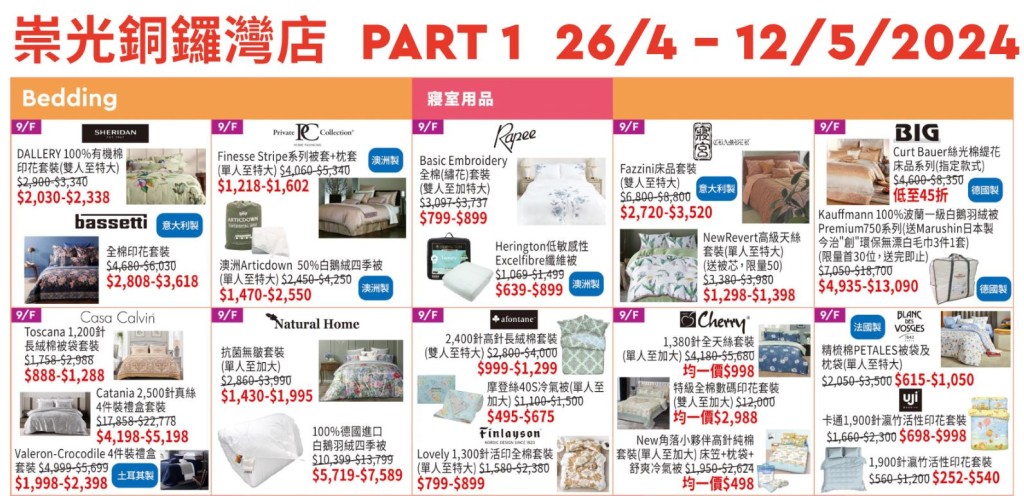 ▲SOGO感謝祭 26/4 - 12/5寢具優惠